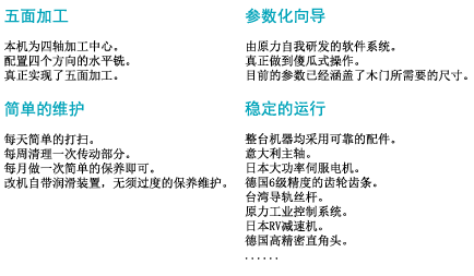 原力四軸木(mù)門加工中心是原力新開發(fā)產品(pǐn),主要(yào)適用於立體加工異形雕刻。